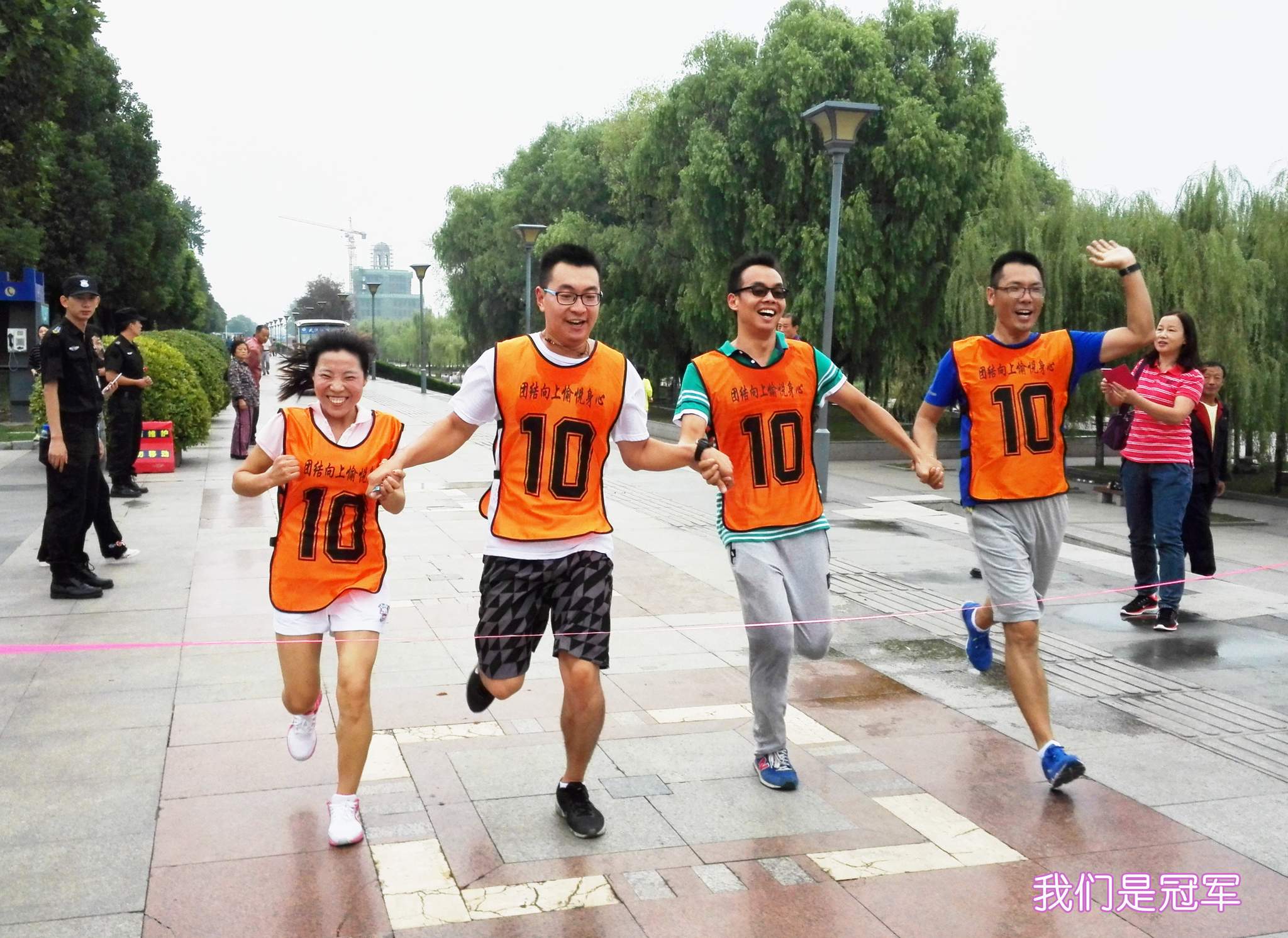 ??? 在本次徒步比賽中,隊(duì)員們平時(shí)的訓(xùn)練成果發(fā)揮了巨大的作用。由于本次比賽是以每組最后一名到達(dá)終點(diǎn)的隊(duì)員來計(jì)算比賽時(shí)間,并要求每組至少有一位女隊(duì)員,因此女隊(duì)員就成為了每組獲勝的關(guān)鍵。雖然公司派出的女隊(duì)員擁有較好的體能和耐力,但畢竟與男隊(duì)員存在一定的差距,而且7公里的距離對(duì)她們來說也是一個(gè)不小的考驗(yàn)。在比賽中,男隊(duì)員們不斷給她們鼓勵(lì),路旁的觀眾也不斷給他們加油助威,女隊(duì)員們迸發(fā)出了驚人的能量,她們和團(tuán)隊(duì)一起完成了全程,頑強(qiáng)的毅力和優(yōu)異的表現(xiàn)也贏得了陣陣喝彩。